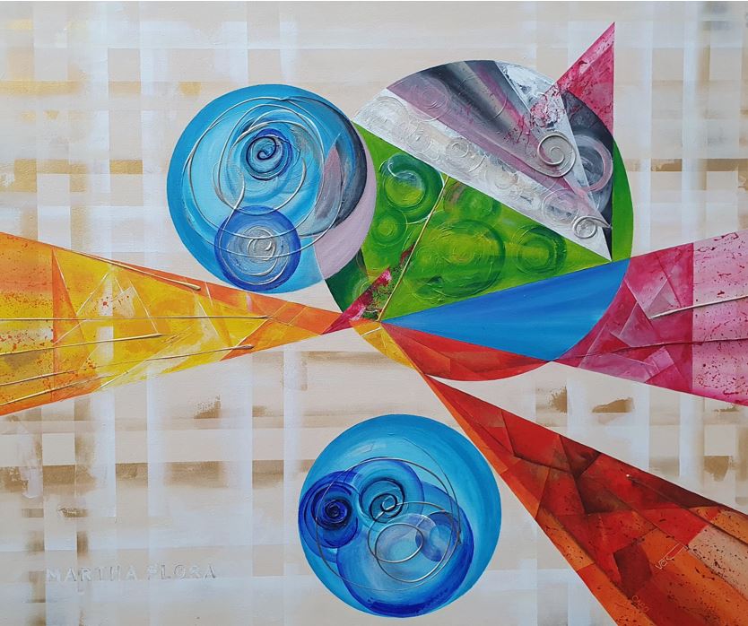 Martha Flora is a nursing home for people with dementia. Care and quality are held in high regard. The colors of their logo were used for this painting, and the name Martha Flora is subtly incorporated into the artwork. You can see this logo in the bottom left corner. It is created with transparent white and silver paint.